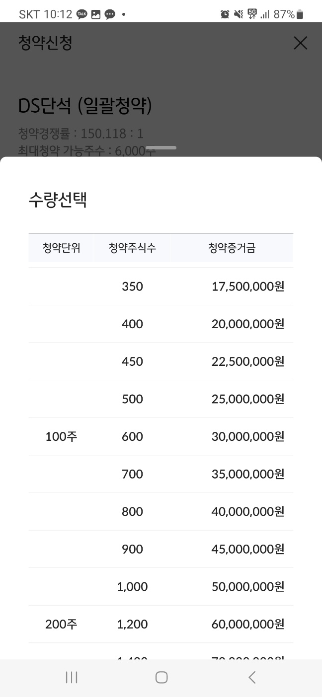 15일 오전 10시 정도 기준으로 청약 경쟁률은 211:1 정도 되며 청약증거금 1750만원으로 350주 신청하였습니다.