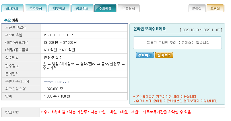 동인기연 | 11월 9일 ~ 11월 10일 | 33,000원 ~ 37,000원 | NH투자증권 계좌개설 |